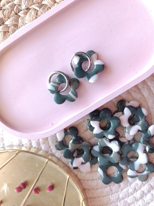 "Flora" vert kaki blanc