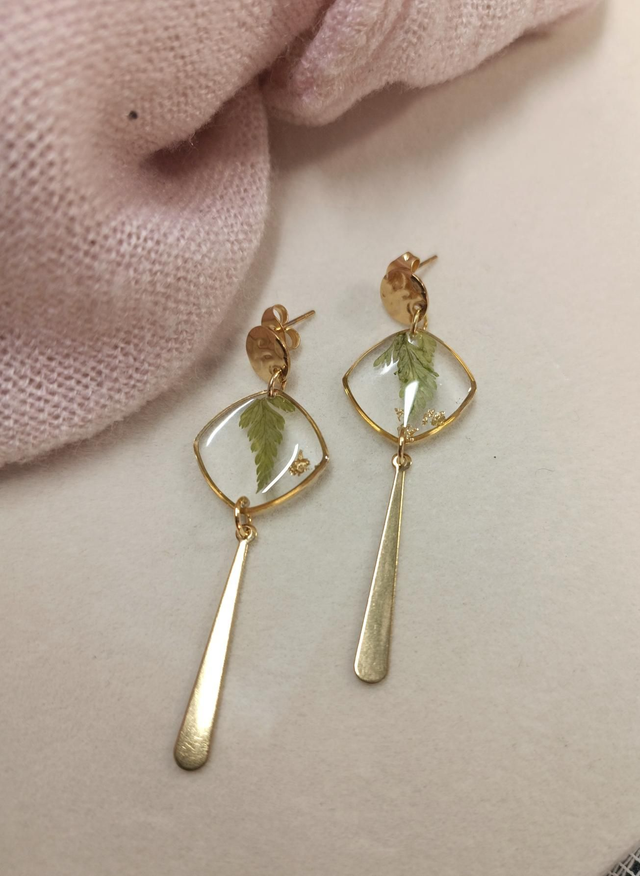 Boucles d'oreilles en acier inoxydable et résine epoxy.