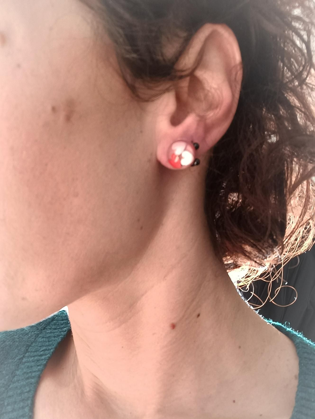 Matière : résine époxy. Clous d'oreilles en acier inoxydable.