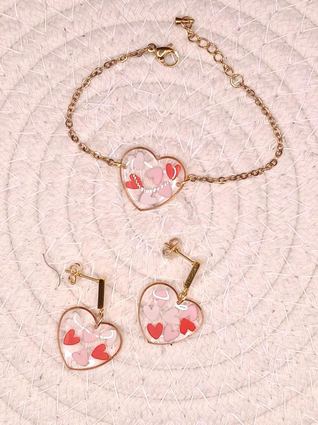 Les parures comprennent : les boucles d'oreilles et le bracelet ou les boucles d'oreilles et le collier.