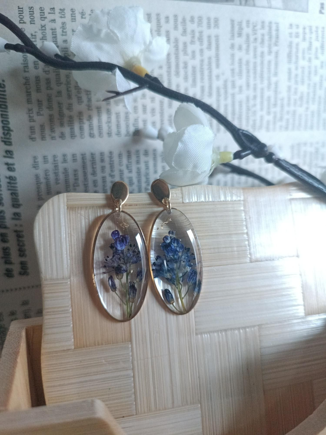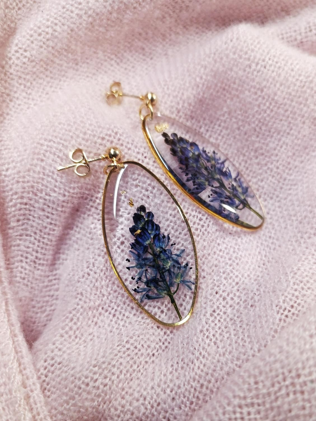Boucles d'oreilles en acier inoxydable et résine epoxy.